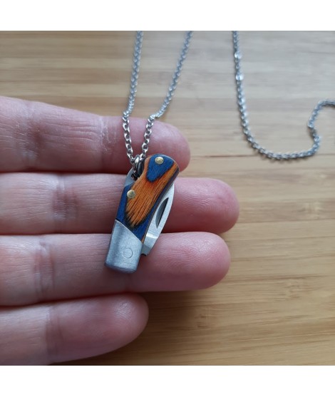 Craquez pour cet adorable collier avec pendentif de couteau miniature. Lame poitue Longueur de la chaîne en acier : 60 cm Fermeture...