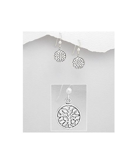 Superbe paire de boucles d'oreilles pendantes, en argent 925/000, collection arbre de vie, symbole de force et de vie. Diamètre : 13 mm. Poids...