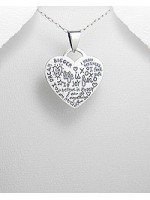 Pendentif coeur en argent avec gravures "Life is fun"