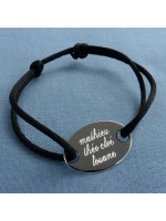 Bracelet composé d'un ovale 2 trous en argent 925/000. Cordon ajustable par noeuds coulissants, couleur au choix. Gravure recto comprise dans le prix. Livré dans une jolie pochette en organza prête à offrir.