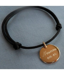 Bracelet composé d'un pendentif personnalisé gravé (médaille ronde, coeur ou trèfle) en argent ou plaqué or