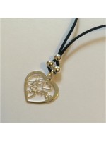Collier sur cordon, couleur au choix, avec joli pendentif en forme de coeur, avec l'inscription "Je t'aime" à l'intérieur. 3 perles au dessus du coeur. Coeur : 20 x 18 mm. Argent 925/000. Livré dans sa jolie pochette organza.