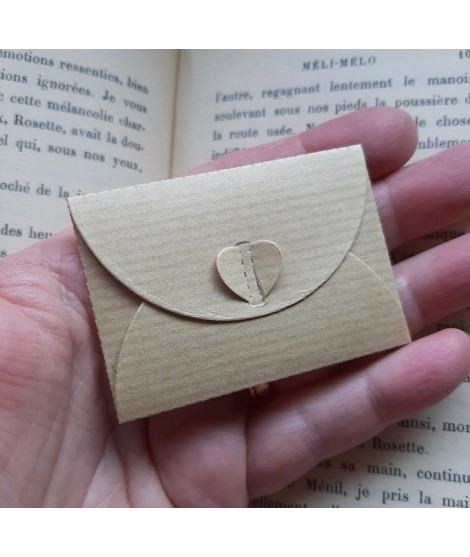 Nouveau 20 mini enveloppes kraft +... Prix 12,50 € Lot de 20 jolies mini enveloppes kraft + 20 mini cartes blanches. ★ Enveloppe fermée : 38 x 25 mm environ ★ Carte blanche : 34 x 23 mm... Aperçu rapide Ajouter au panier